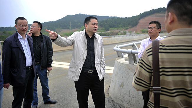 (肖林董事长在虹云桥建设现场指导事情)