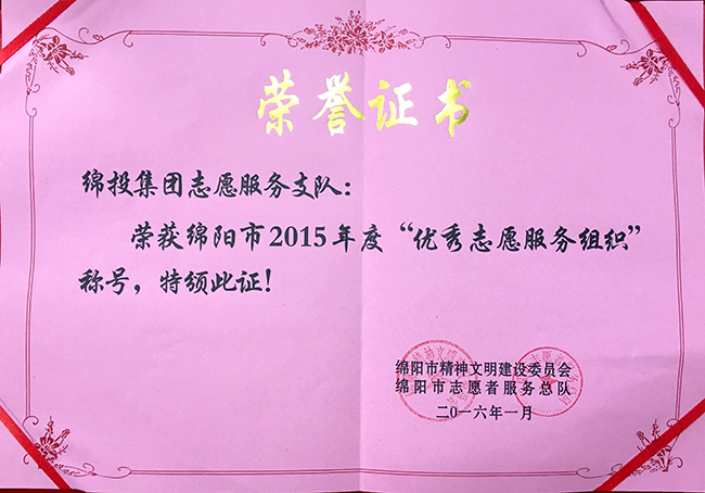近日 ,庄闲和对子网站集团志愿效劳支队获得绵阳市精神文明建设委员会、绵阳市志愿者效劳总队表扬 ,荣获2015年度“优秀志愿效劳组织”荣誉称呼。