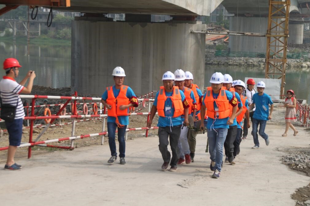 上午10时,现场模拟宁静员接上级主管部分紧急通知涪江上游连续大暴雨,预计两小时洪峰抵达虹云桥施工区域,施工现场各工种、各责任部分按防汛应急预案的要求开展防汛处理及应抢救援事情,10分钟后,各项防汛事情准备完毕,现场指定区域留下巡查员,所有其他人全部撤离施工区域演练结束。随后,参会人员对项目落实63号文件及现场宁静治理经验、标准化施工宣传展板进行了观摩学习。