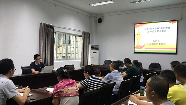 凭据 “两学一做”学习教育事情安排,7月21日下午,西津物流和项目治理公司邀请了绵阳市委党校党史党建办公室副主任、市委“两学一做”讲师团第五组组长蒋之亮副教授在集团第二办公区二楼集会室作了题为《开展“两学一做”学习教育,提升员工职业素养》的专题讲座。两家公司全体党员及入党积极分子加入了学习。