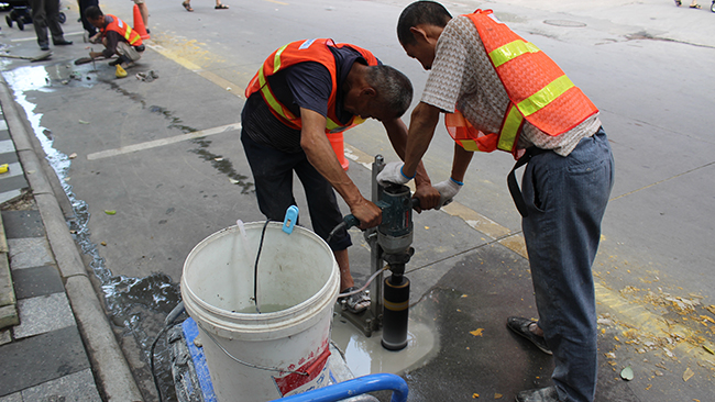 目前,项目正在进行地磁装置、泊位编码和泊位标线维护等最繁琐的基础性事情,整个项目一期计划装置地磁6000个,泊位编码13300个。时下正值高温暑季,公司班子高度重视,及早安排,业主单位和施工单位在项目建设中不分相互,建立物联网项目建设联合指挥部。经战前发动,停车公司运营部站长及以上治理人员全力配合施工单位分路段实施施工,加入施工人员顶着烈日,争分夺秒地按进度实施,经一周时间的奋战,现已装置地磁470余个,泊位编码470余个。