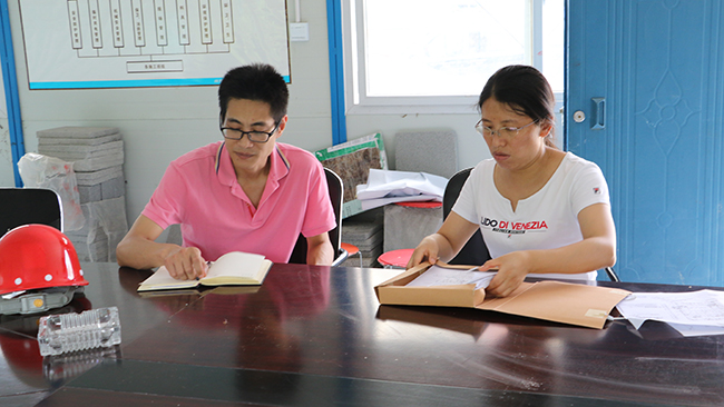 (巡查组检查教育园区项目部宁静落实相关的制度与纪录)